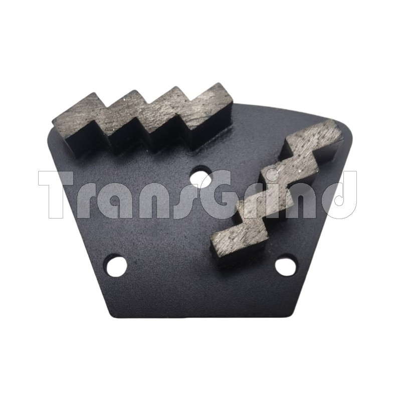 Ocabeça de moagem de diamante trapezoidalApresenta dois segmentos diamantados em formato de cobra, projetados para lixamento agressivo e preparação de superfícies em pisos de concreto e granilite. Projetado para durabilidade e longa vida útil, esteferramentas de retificação de metal trapezoidalé ideal para remover revestimentos, nivelar superfícies irregulares e preparar pisos para polimento.